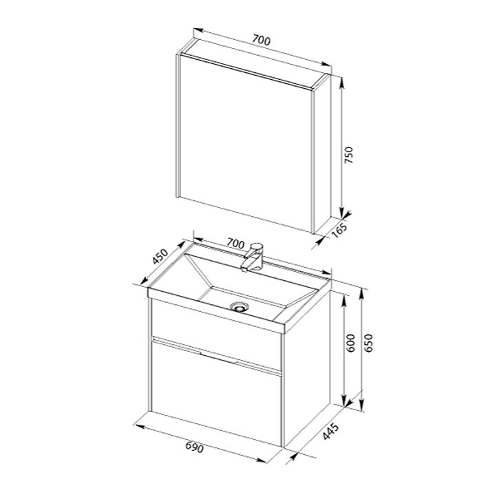 Тумба с раковиной Aquanet Латина 70 подвесная или напольная 2 ящика