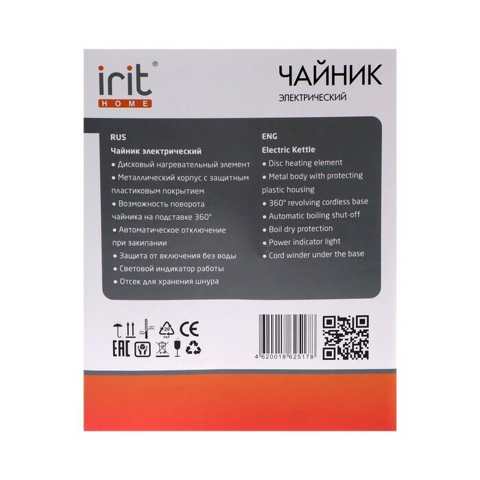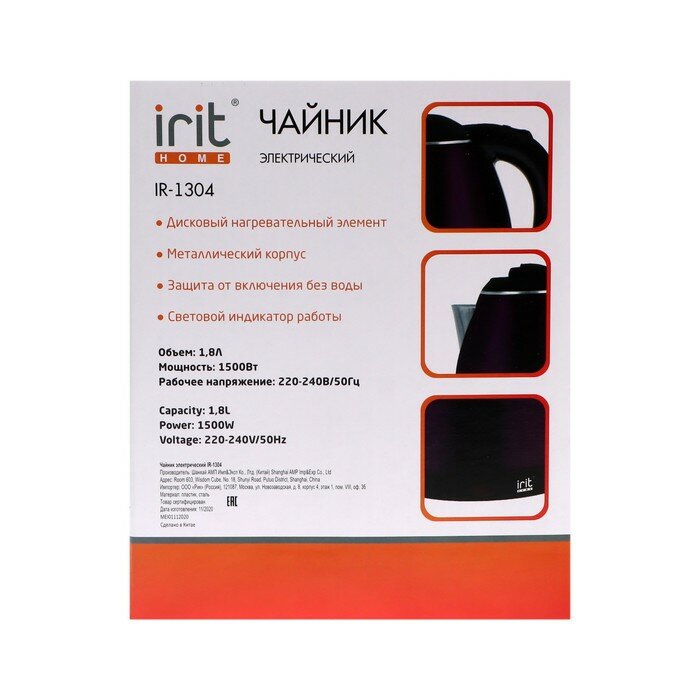 IRIT Чайник электрический IR-1304, металл, 1.8 л, 1500 Вт, фиолетовый интересное: