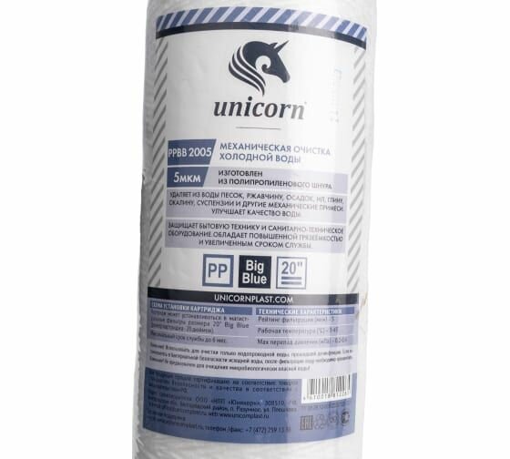 Картридж из п/п шнура для механической очистки воды Unicorn PP20BB20 20BB 20МКМ ИС.230086