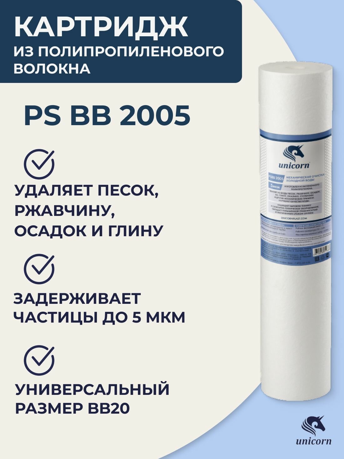 Картридж Unicorn PS ВВ 2005, полипропиленовый, 5 мкм Unicorn 2629591 .