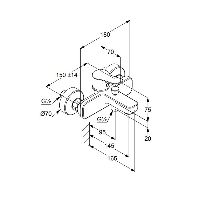 Настенный смеситель Kludi Pure&Easy, арт. 376819165, неповоротный излив, с выходом на душ (без лейки), белый цвет