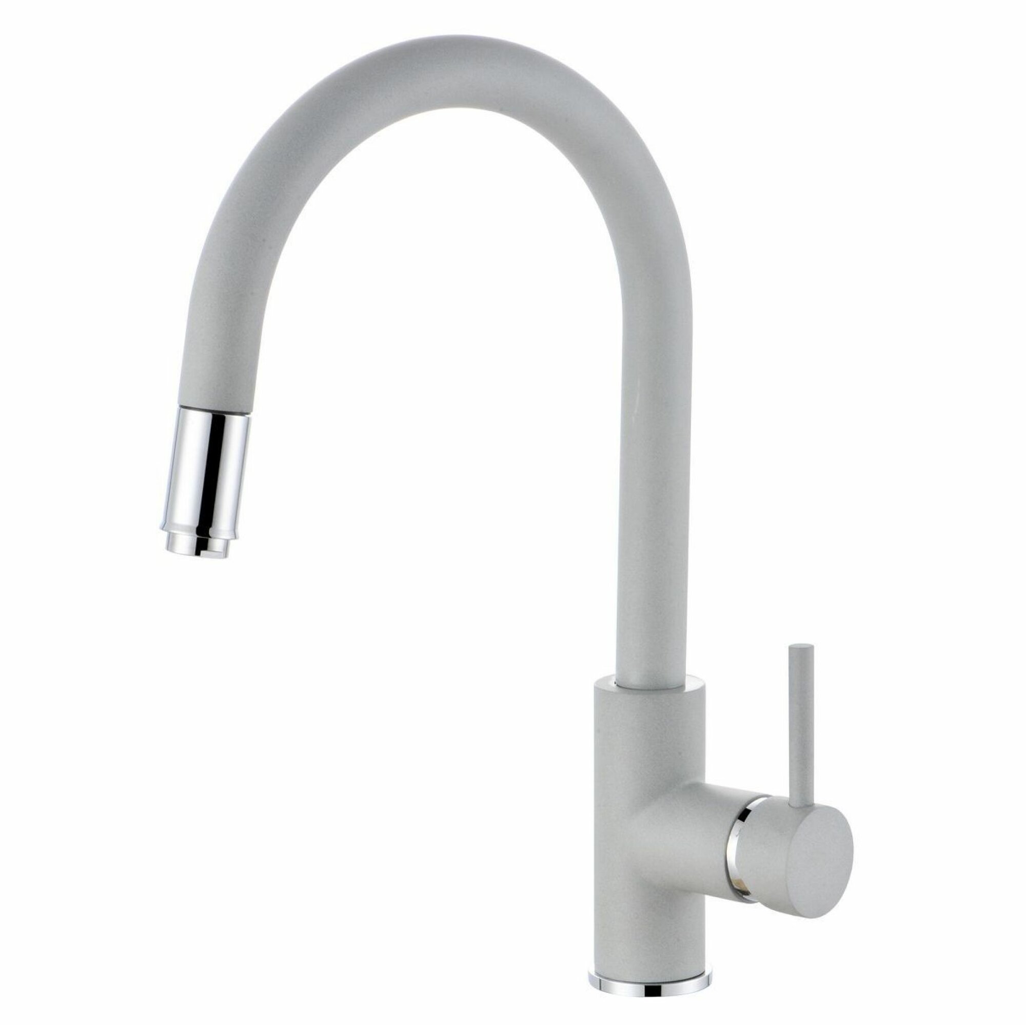 Купить Смеситель для кухни с выдвижным поворотным высоким изливом ALVEUS DELOS - P G81 CONCRETE матовый серый