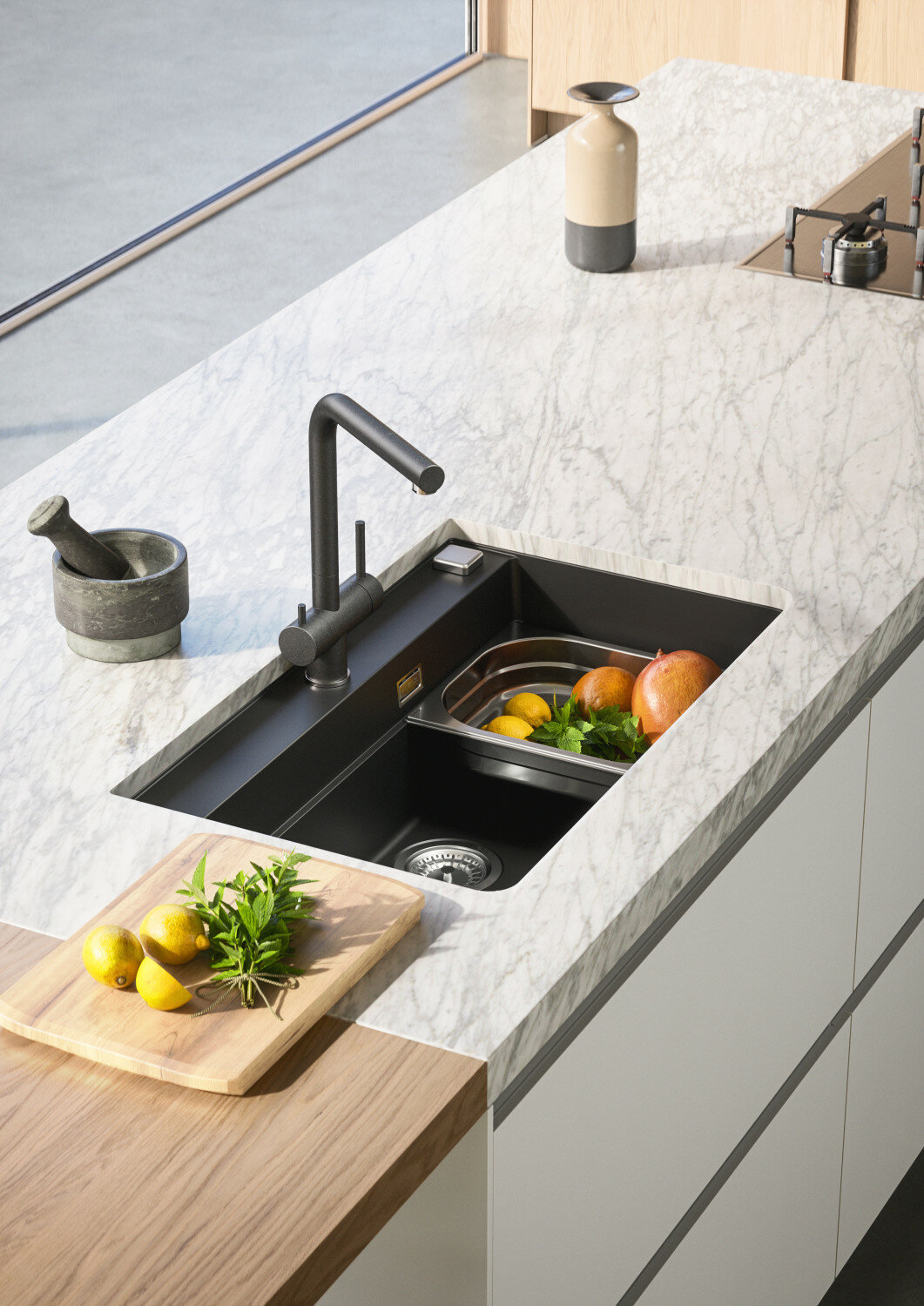 Смеситель для кухни с высоким поворотным изливом ALVEUS GENESIS KATI G91 CARBON черный матовый