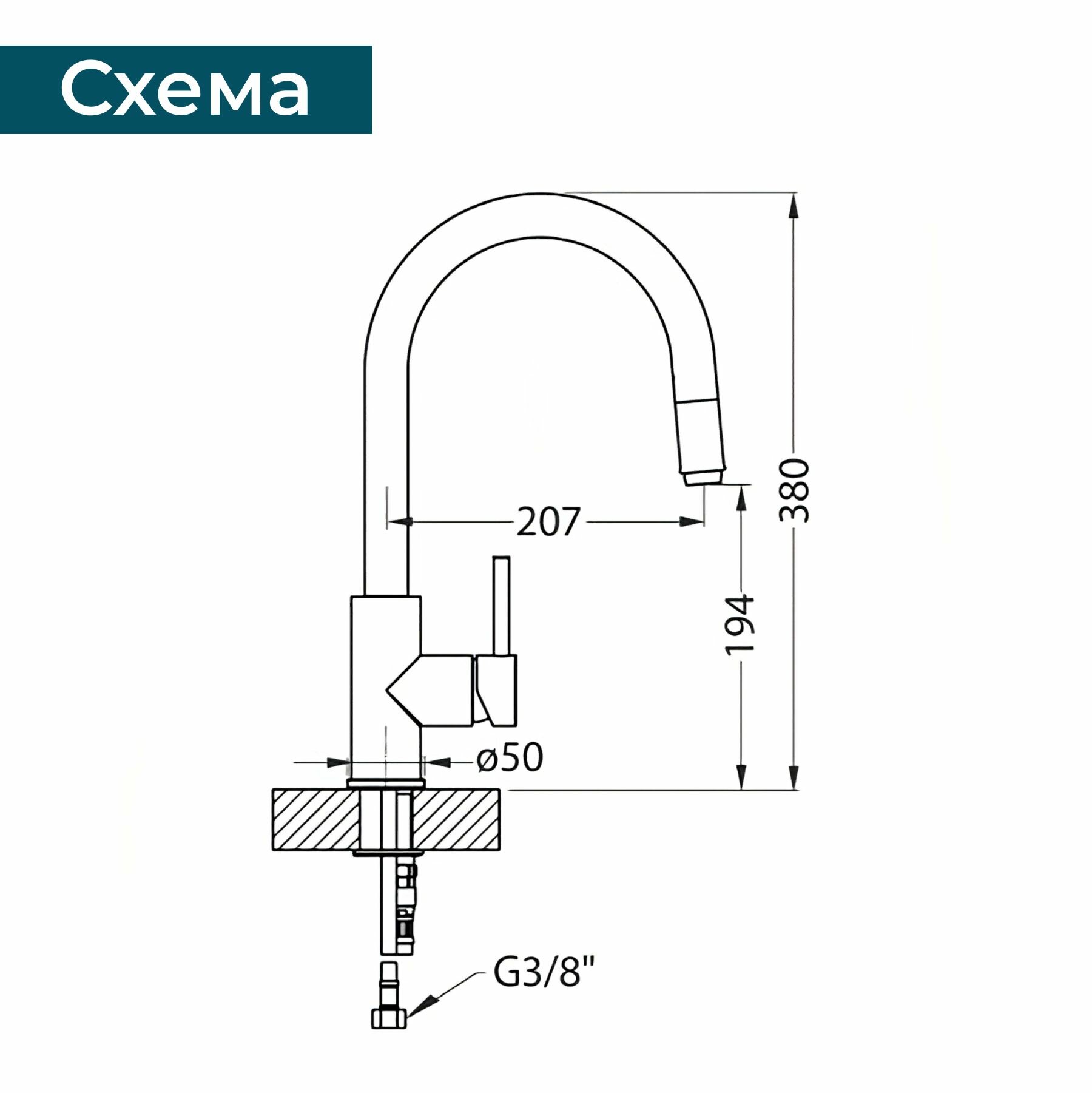 Смеситель для кухни с выдвижным высоким поворотным изливом ALVEUS DELOS - P G91 CARBON черный матовый