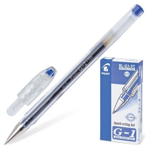 Ручка гелевая PILOT "G-1", синяя, корпус прозрачный, узел 0,5 мм, линия письма 0,3 мм, BL-G1-5T - 1 шт.