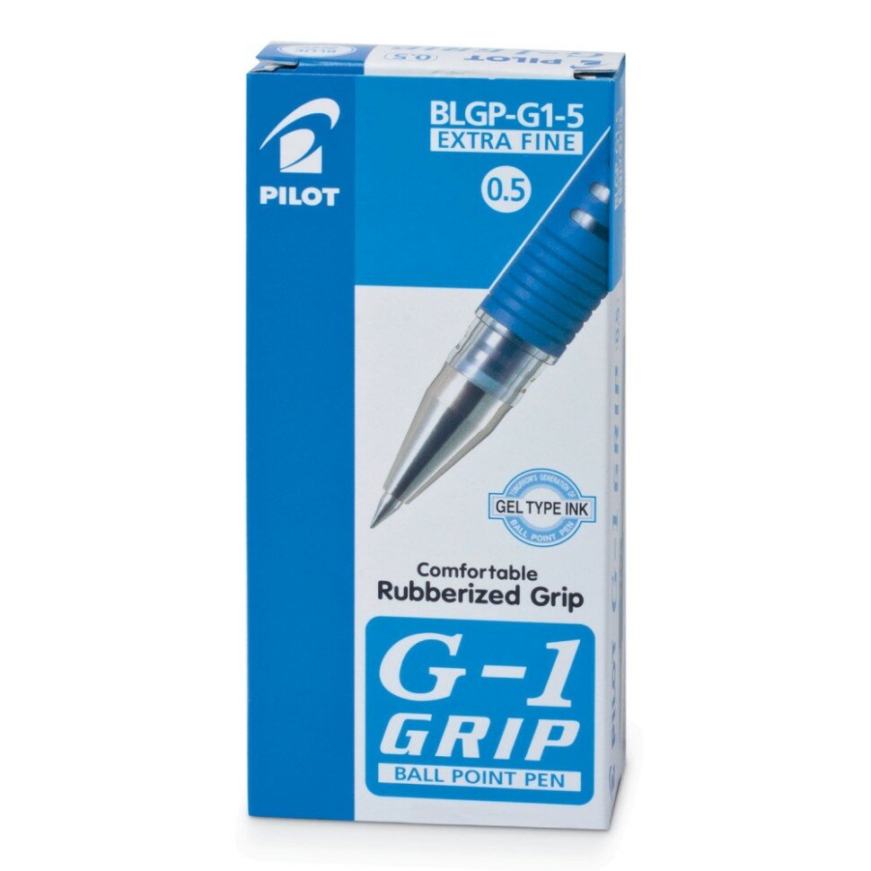Ручка гелевая с грипом PILOT "G-1 Grip", синяя, корпус прозрачный, узел 0,5 мм, линия письма 0,3 мм, BLGP-G1-5 - 12 шт.