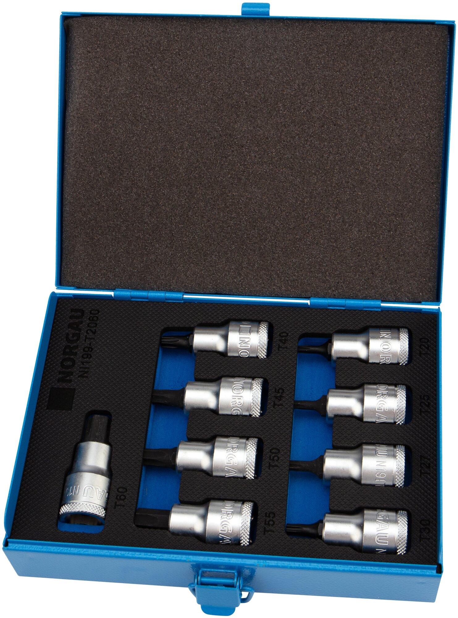 Набор торцевых головок NORGAU Industrial с битами под шлиц Torx, квадрат 1/2", (Т20-Т60), 9 штук в чемодане