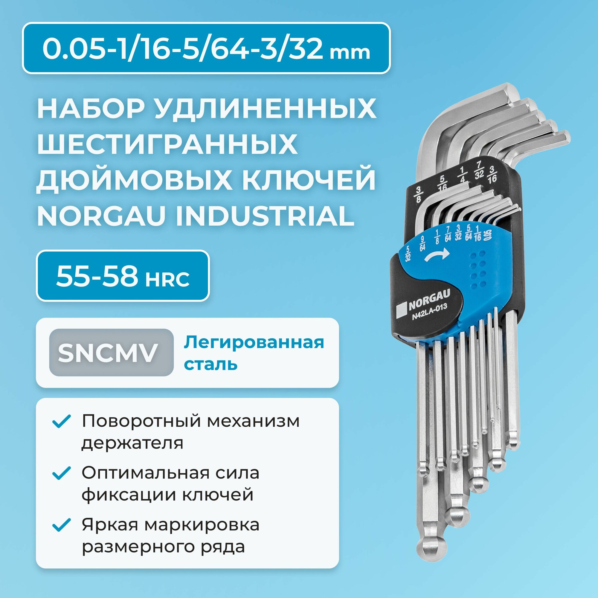 Набор шестигранных ключей NORGAU дюймовые, удлиненные, 13шт N42LA-013 061005013
