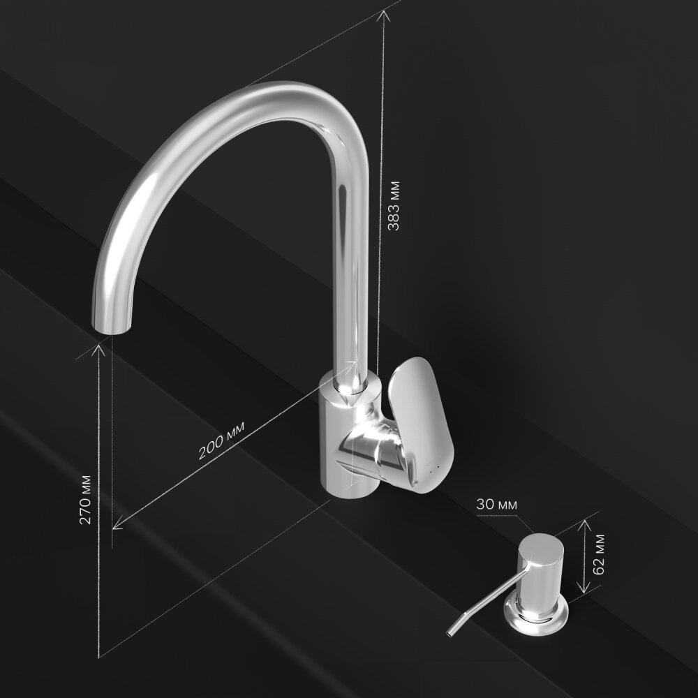 F8007D00 Like, набор 2в1: смеситель для кухни, диспенсер, хром, шт.