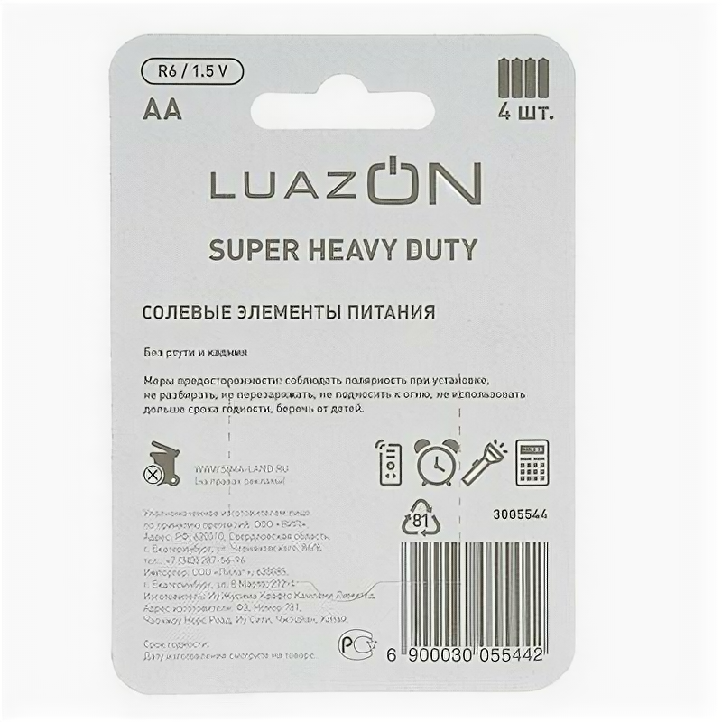 Ниже Вы можете прочитать отзывы на Батарейка солевая LuazON Super Heavy Duty, AA, R6, блистер, 4 шт, Luazon Home, ознакомится с подробными характеристиками, посмотреть интересные обзоры и фотографии на Батарейка солевая LuazON Super Heavy Duty, AA, R6, блистер, 4 шт, Luazon Home.