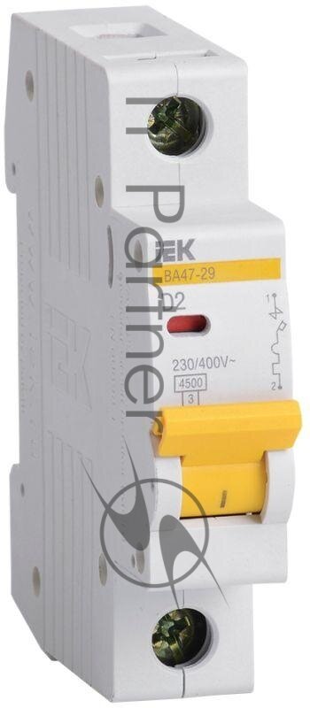 Модульный автоматический выключатель ВА47-29 1 полюс, 2А, х-ка D | код. MVA20-1-002-D | IEK ( 1шт. )