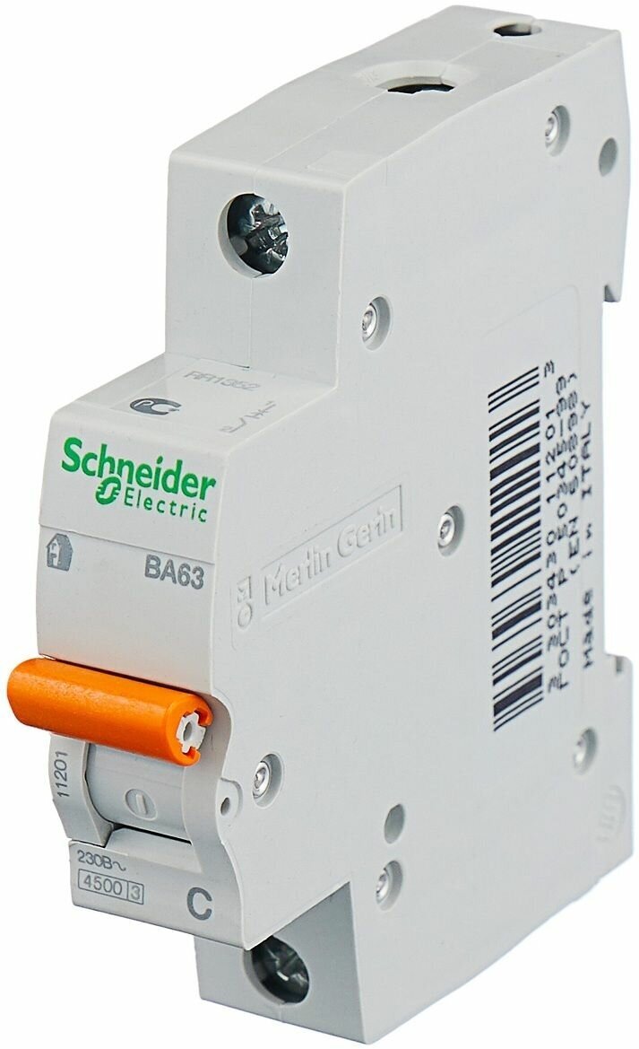Автоматический выключатель SCHNEIDER ELECTRIC 1п C 6А 4.5кА BA63 домовой 11201