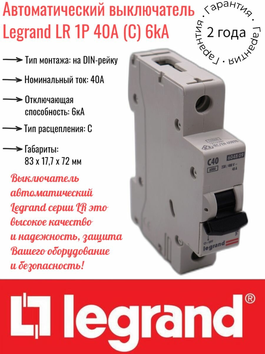 Выключатель автоматический модульный 1п C 40А 6кА LR Leg, LEGRAND 604809 (1 шт.)