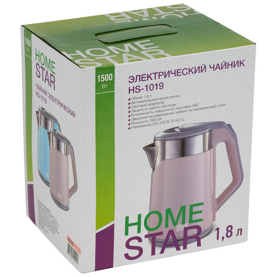 Купить Чайник электрический HOMESTAR HS-1019, пластик, колба металл, 1.8 л, 1500 Вт, розовый