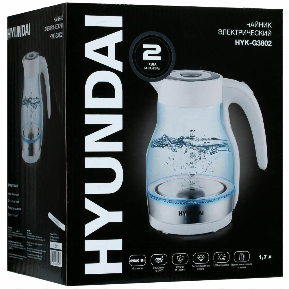 Электрочайник Hyundai HYK-G3802 белый интересное: