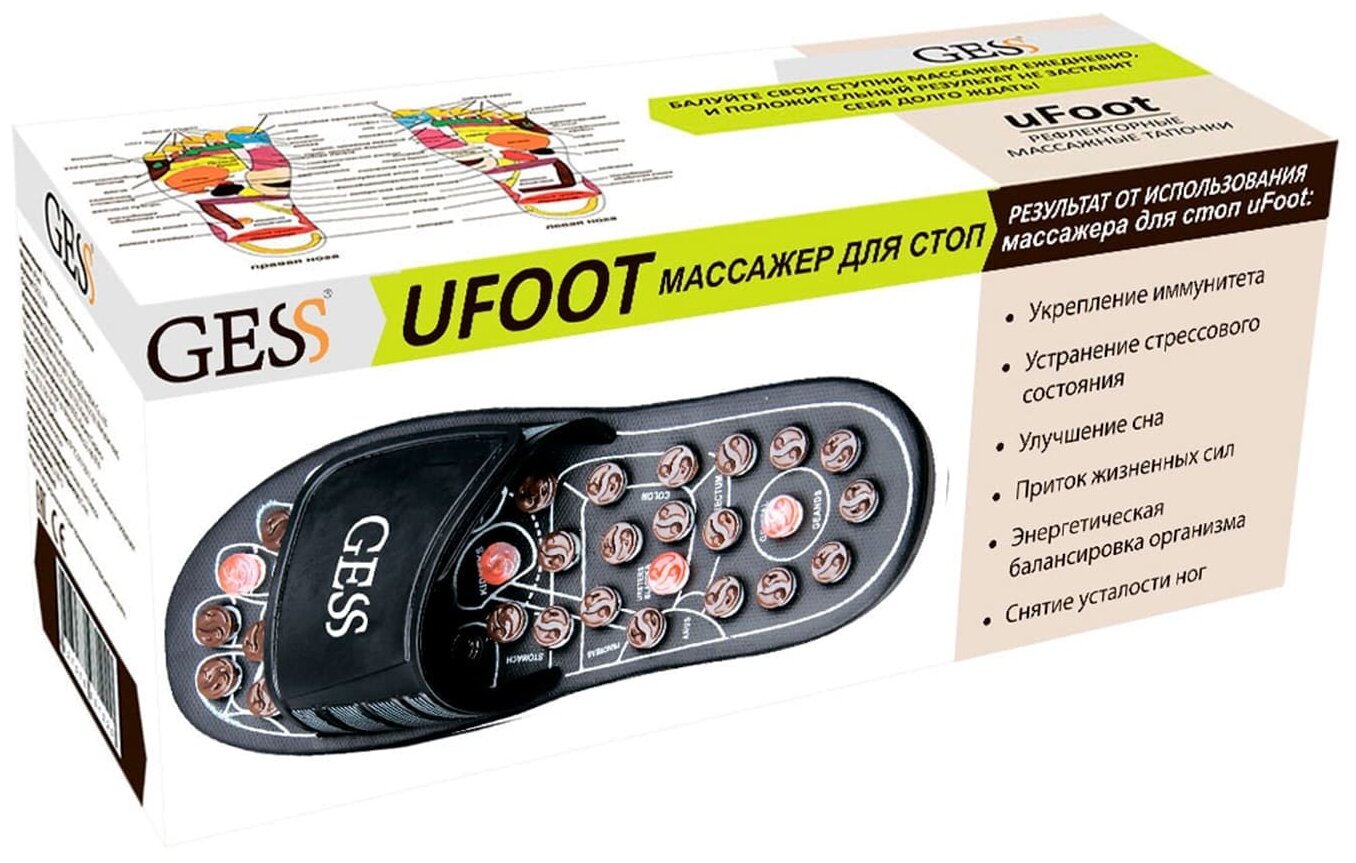 Акупунктурный массажные тапочки GESS массажные тапочки uFoot (S 38-39), GESS-204 S, S (38-39), черный, 2 шт.