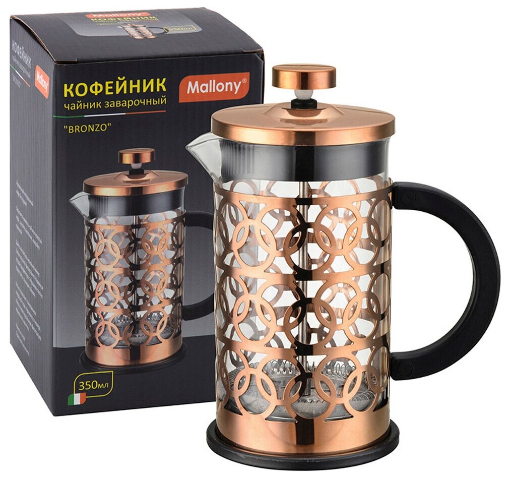 Чайник/кофейник (френч-пресс) 350мл, Bronzo, нерж сталь/стекло, 950153 Mallony