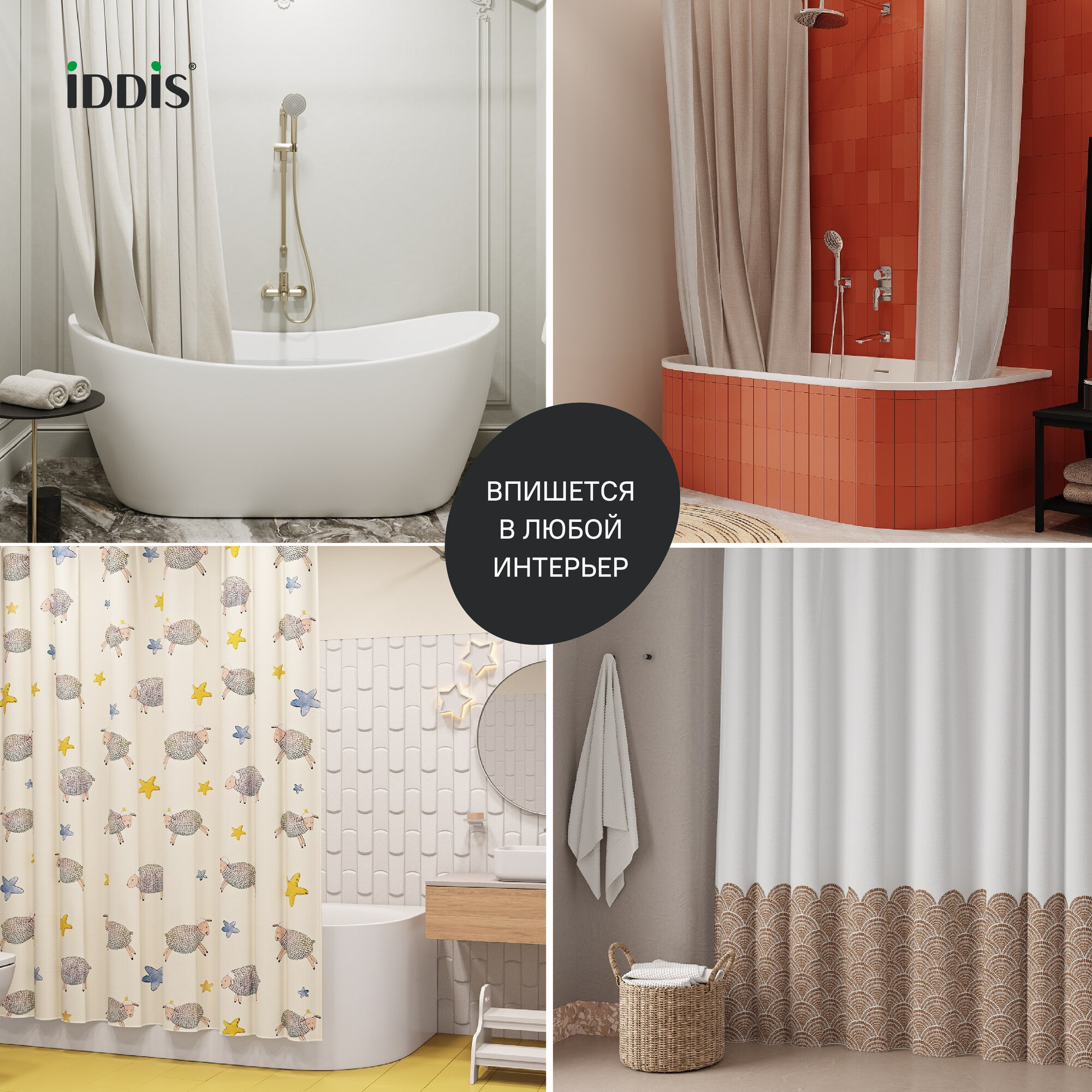 Штора для ванной комнаты и душа IDDIS Base BP03P18i11 180x200 см, тканевая, водонепроницаемая, полиэстер, с кольцами