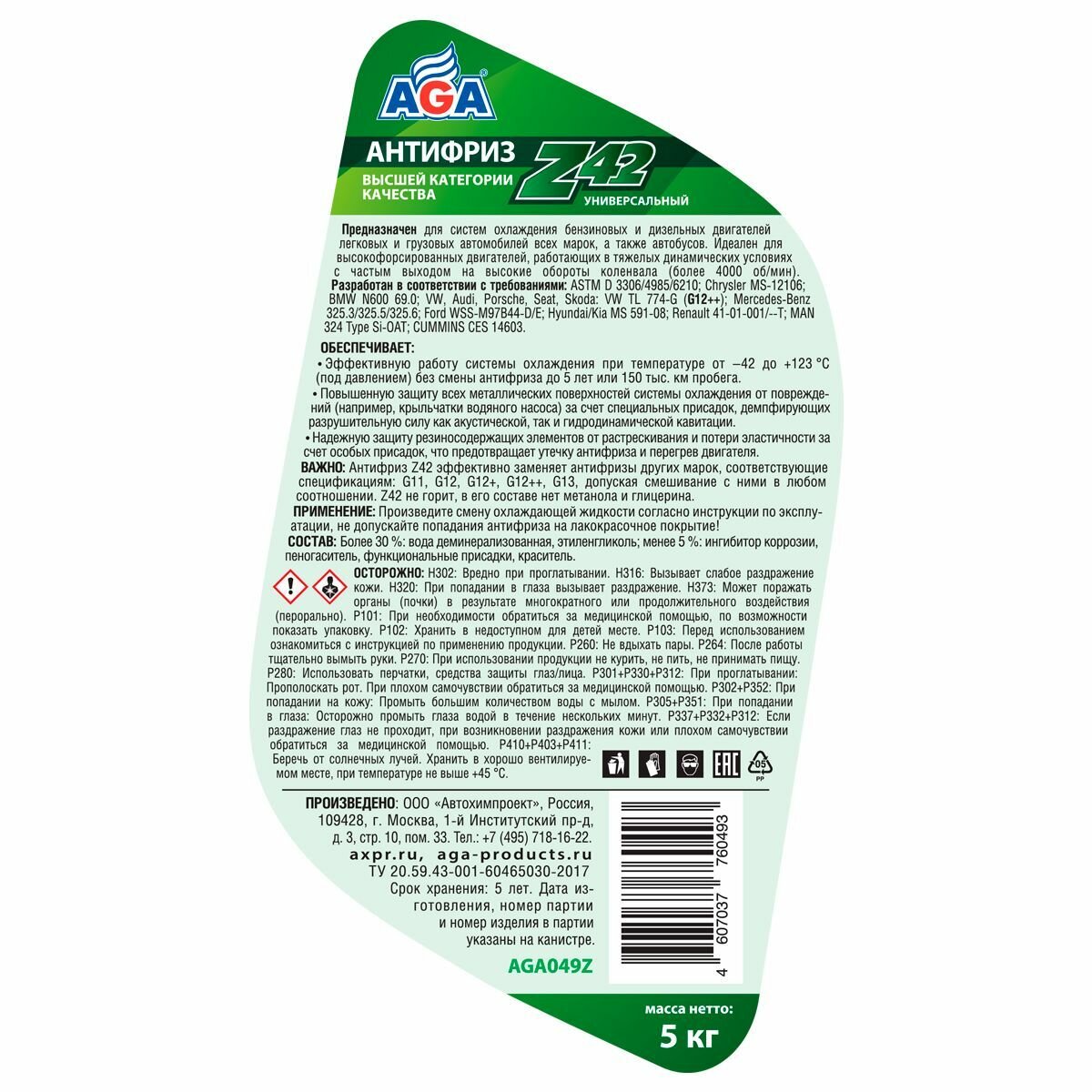 AGA049Z AGA AGA AGA049Z_антифриз 5KG !готовый к применению, зеленый, -42С\