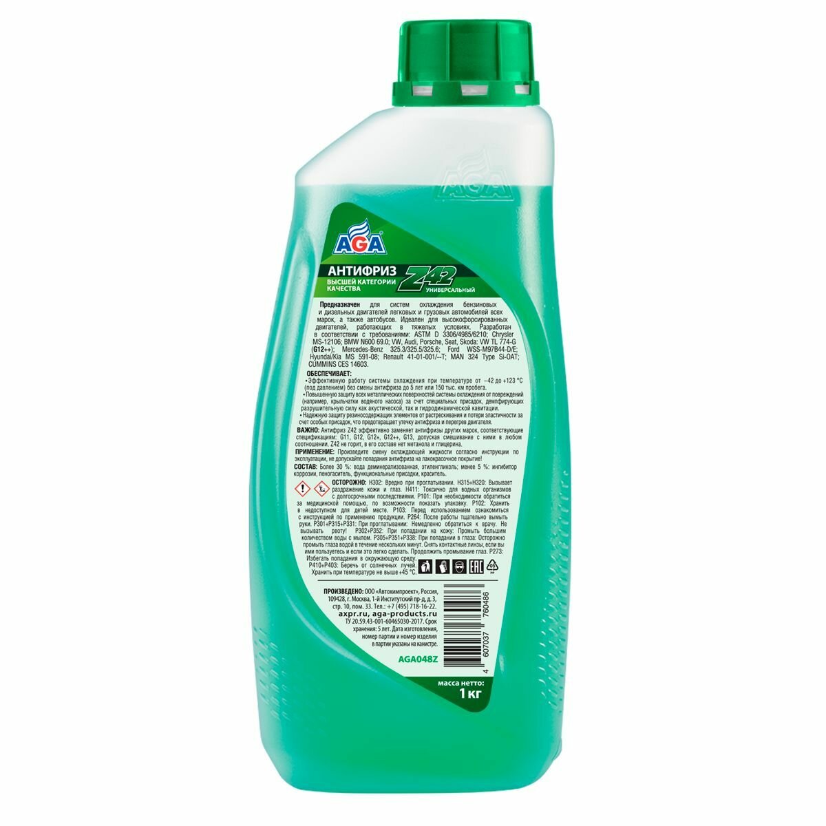 AGA AGA048Z Антифриз, готовый к применению, зеленый, -42С, 1 кг, G-12++