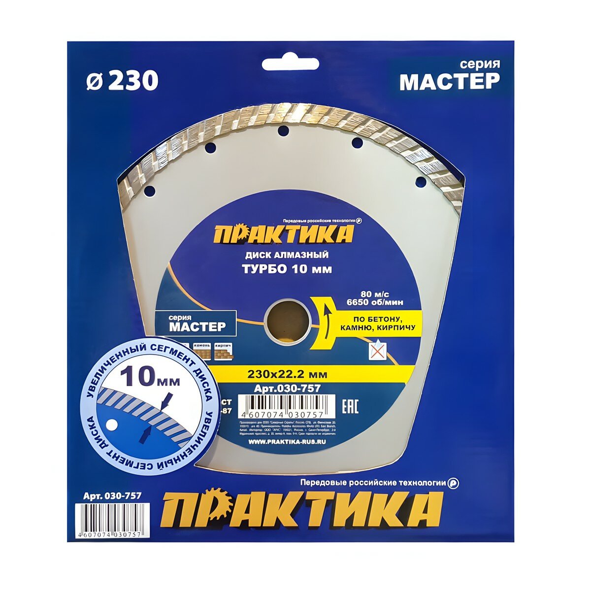 Диск алмазный турбированный ПРАКТИКА "Мастер" 230 х 22 мм (1 шт.) коробка (230х22мм, коробка)