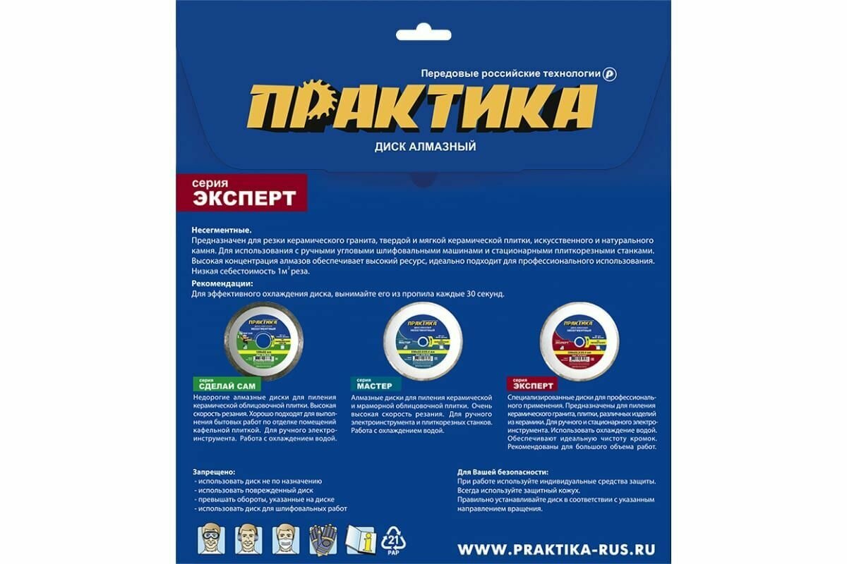Диск алмазный несегментный ПРАКТИКА "Эксперт-керамогранит" 034-793