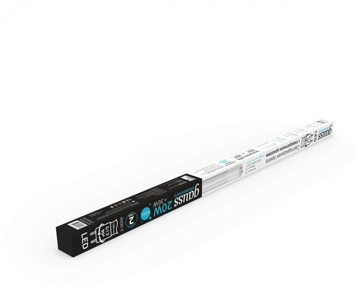 Лампа светодиодная Elementary T8 20Вт 4000К G13 1560лм 1200мм стекло поворотная, GAUSS 93029-R (1 шт.)