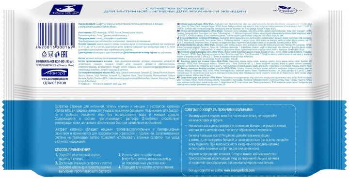 White whale салфетки влажные для интимной гигиены для мужчин и женщин (для ухода за лежачими больными) 80 шт.