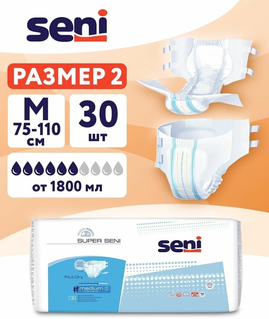 Подгузники для взрослых Seni Super, Medium, 30 шт.