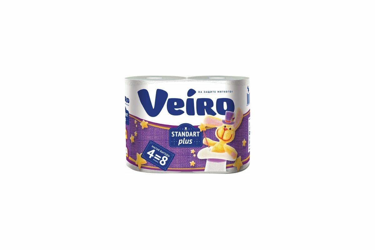 Туалетная бумага Veiro Standart Plus белая двухслойная 4 рул.