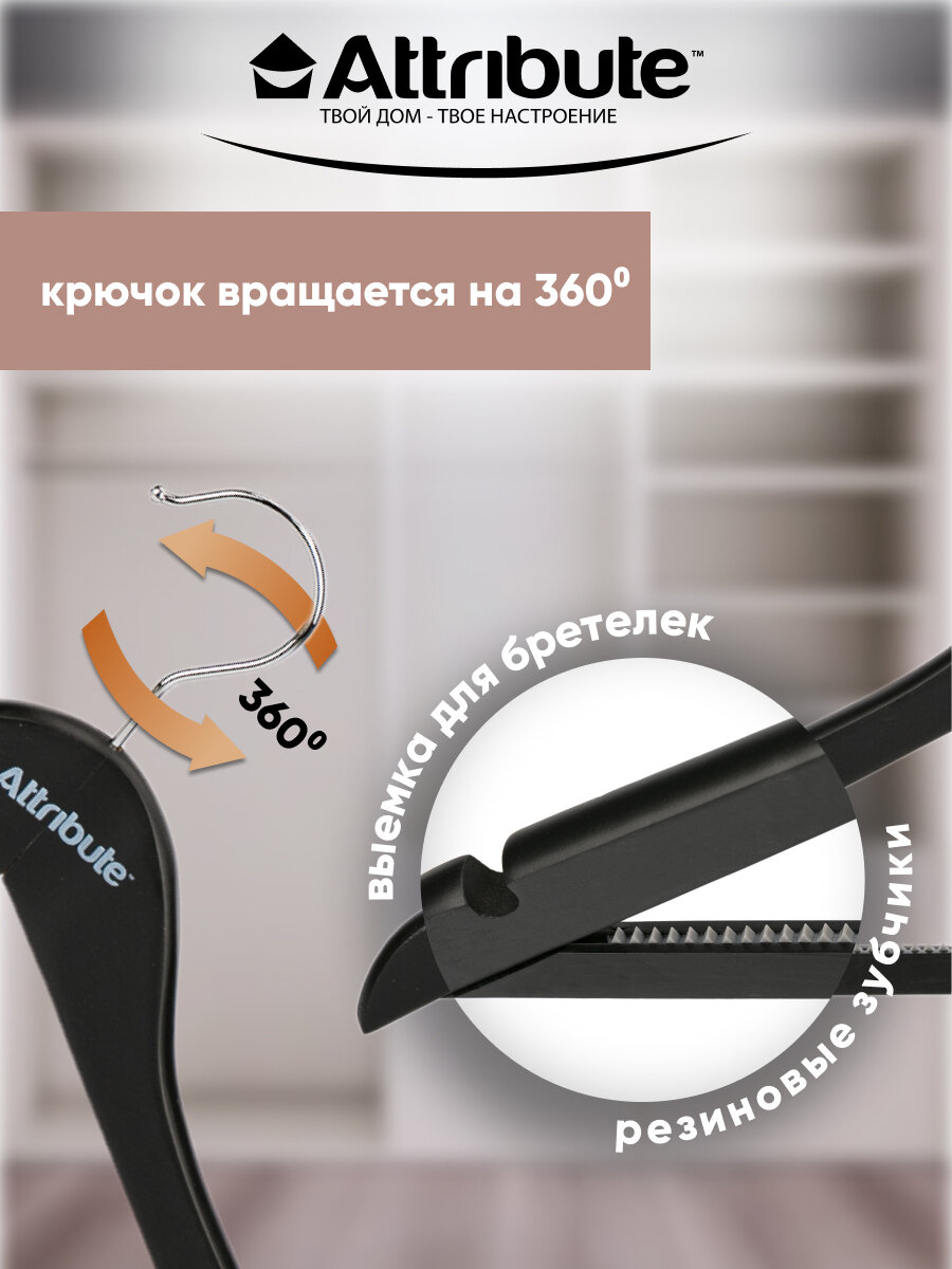 набор вешалок ATTRIBUTE Siluet Black 4шт 44см универсальные дерево, металл