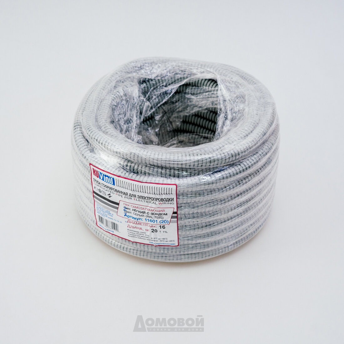 Купить Труба гофрированная ПВХ легкая d16мм с протяжкой сер. (уп.20м) Ruvinil 11601(20)