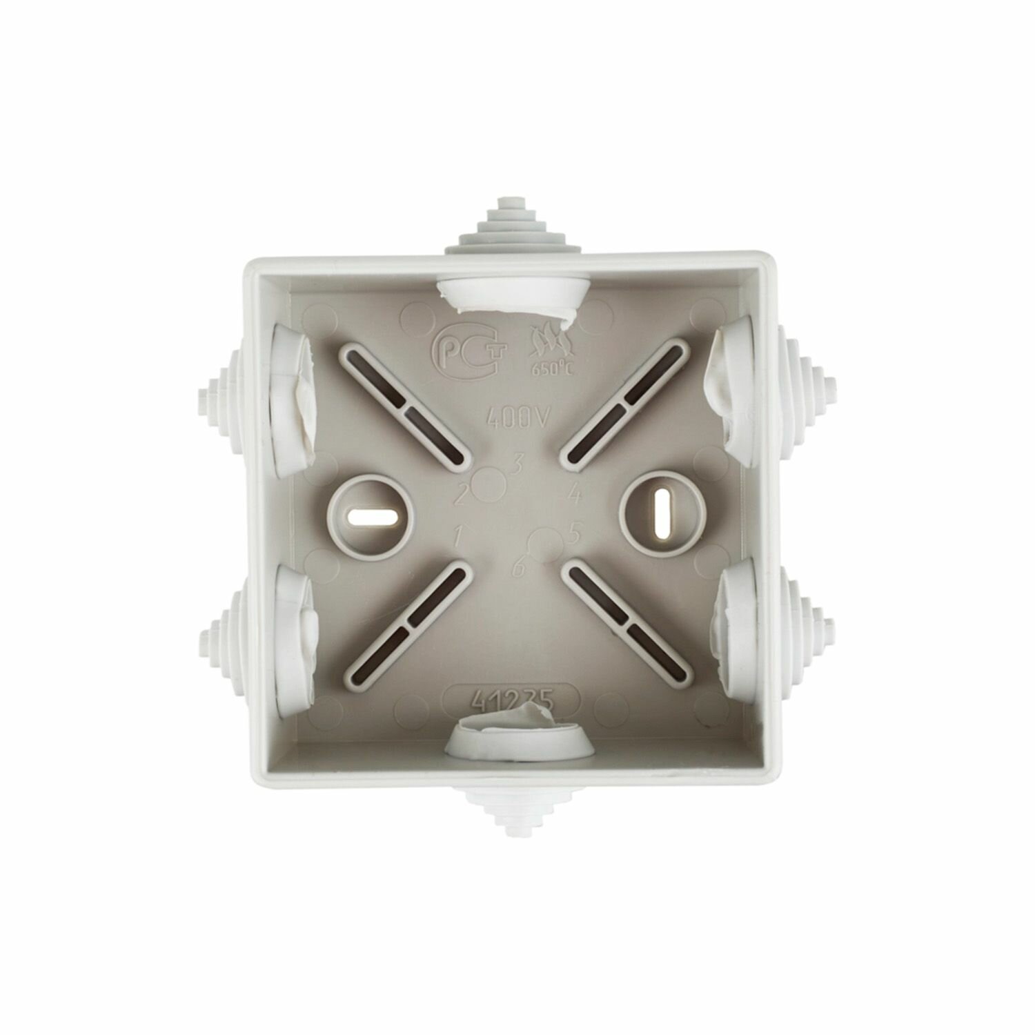Коробка КМ41235 распаячная для открытой установки 85х85х40 мм IP44 (RAL7035, 6 гермовводов)
