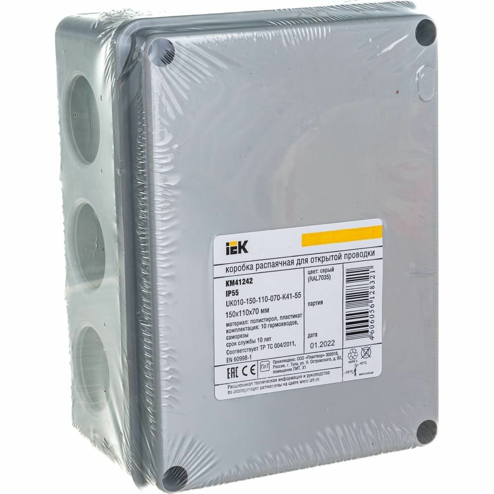 10шт. - Коробка распределительная 150х110х070 серая IP55 КМ41242 / IEK; арт. UKO10-150-110-070-K41-55; оригинал / - комплект 10шт