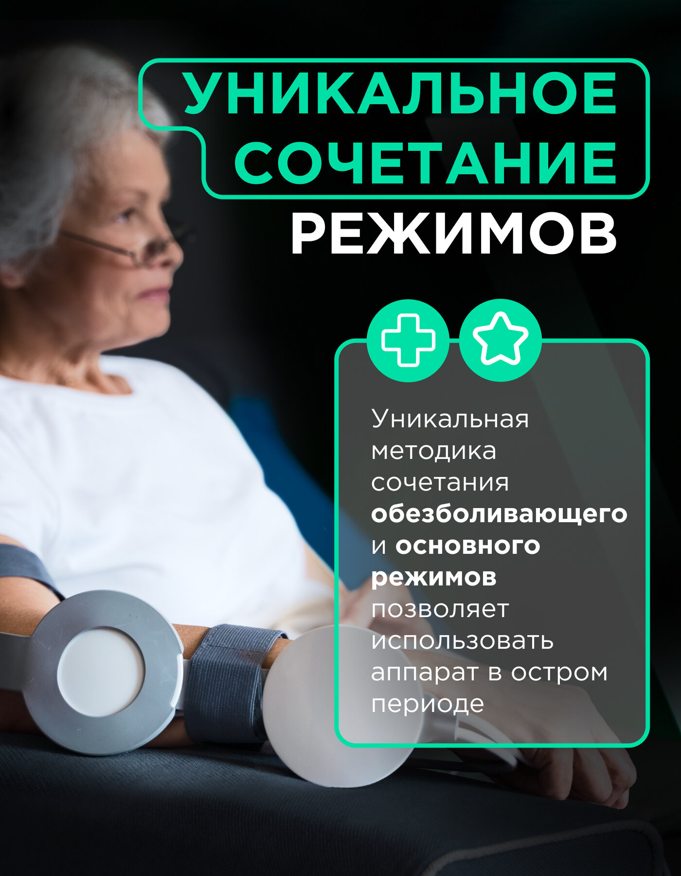 | Отзыв: | Универсальный и очень хороший аппарат, можно применять даже во время острого периода. Нравится, что нет дискомфорта никакого при использовании. Лечу больный колени. |