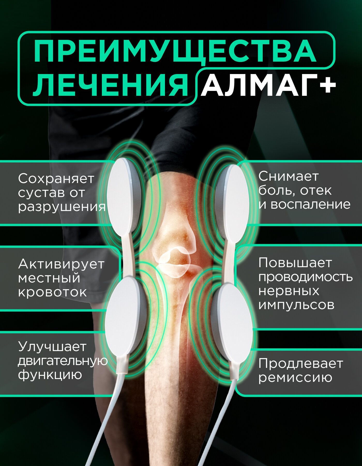 | Плюсы: | Лучший друг моим суставам. Имею ряд проблем, которые только усиливались с возрастом, но Алмаг помог мне предотвратить дальнейшее развитие и далее помогает жить без боли. |