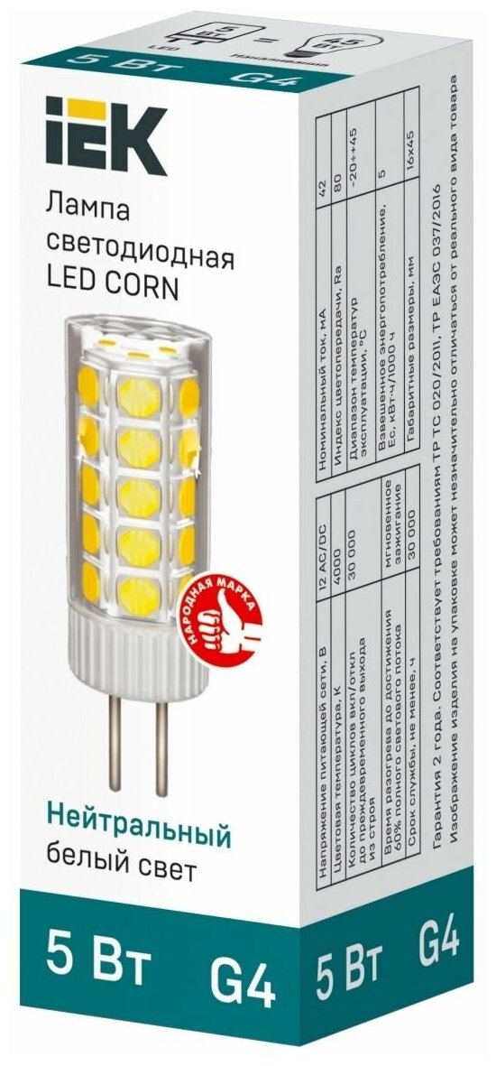 Лампа Светодиодная CORN капсула 5Вт 12В 4000К керамика G4 IEK LLE-CORN-5-012-40-G4 (1 шт.) интересное:
