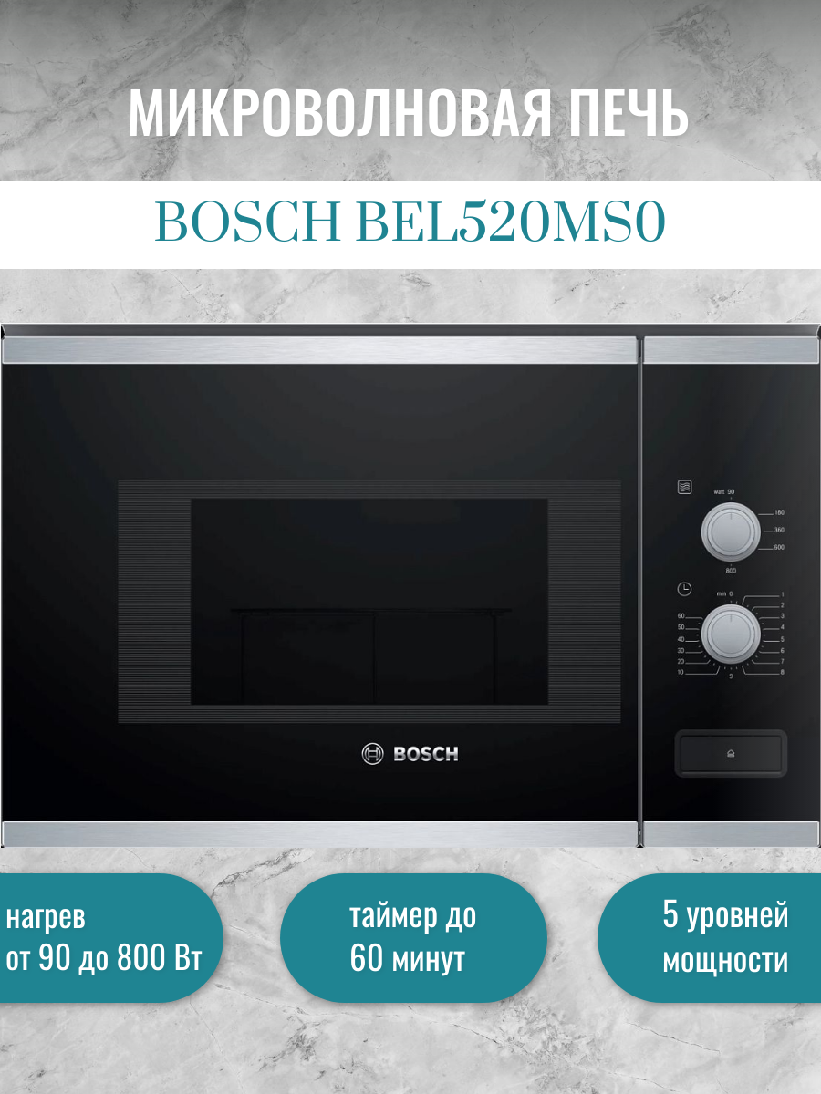 Ниже Вы можете прочитать отзывы на Встраиваемая микроволновая печь Bosch BEL520MS0, ознакомится с подробными характеристиками, посмотреть интересные обзоры и фотографии на Встраиваемая микроволновая печь Bosch BEL520MS0.
