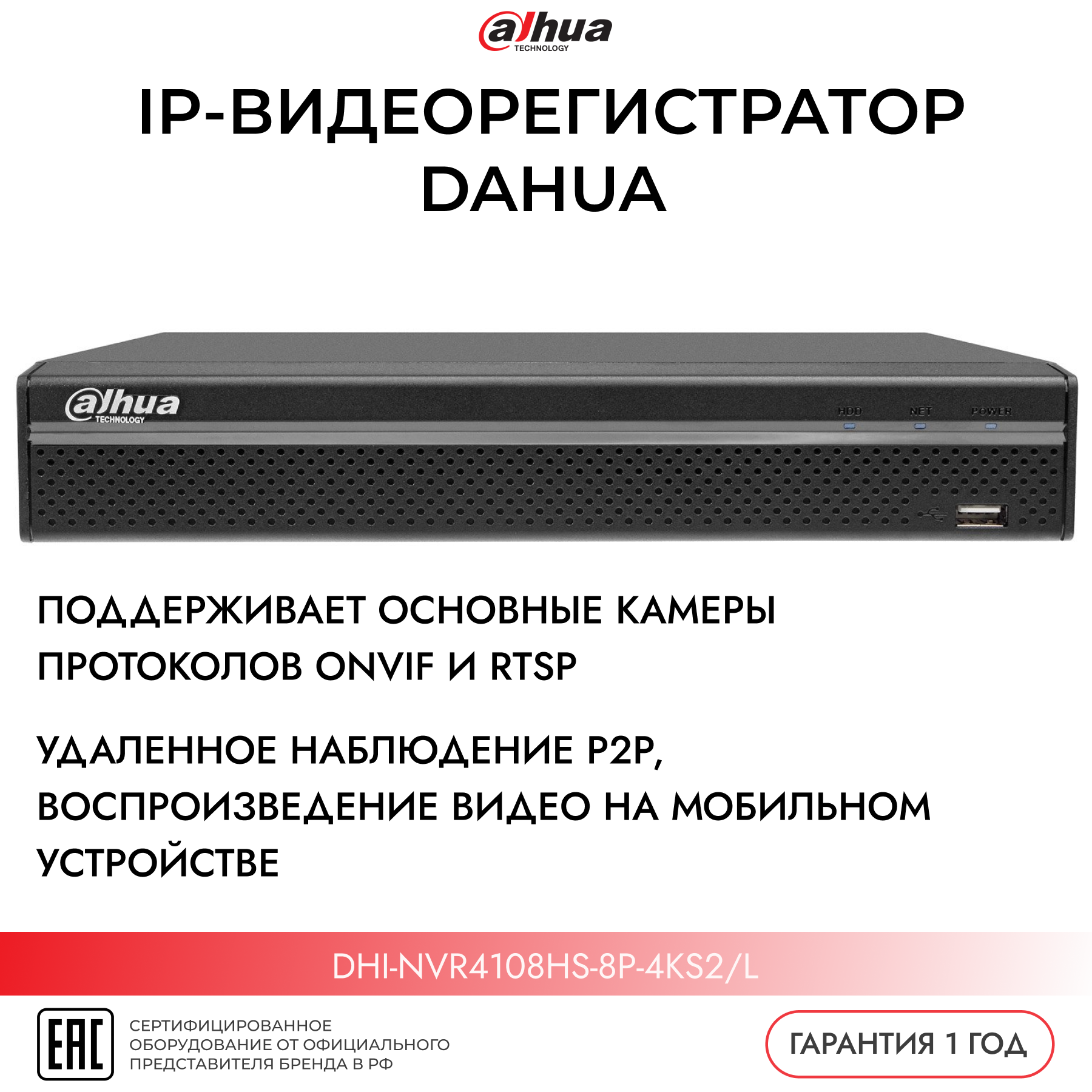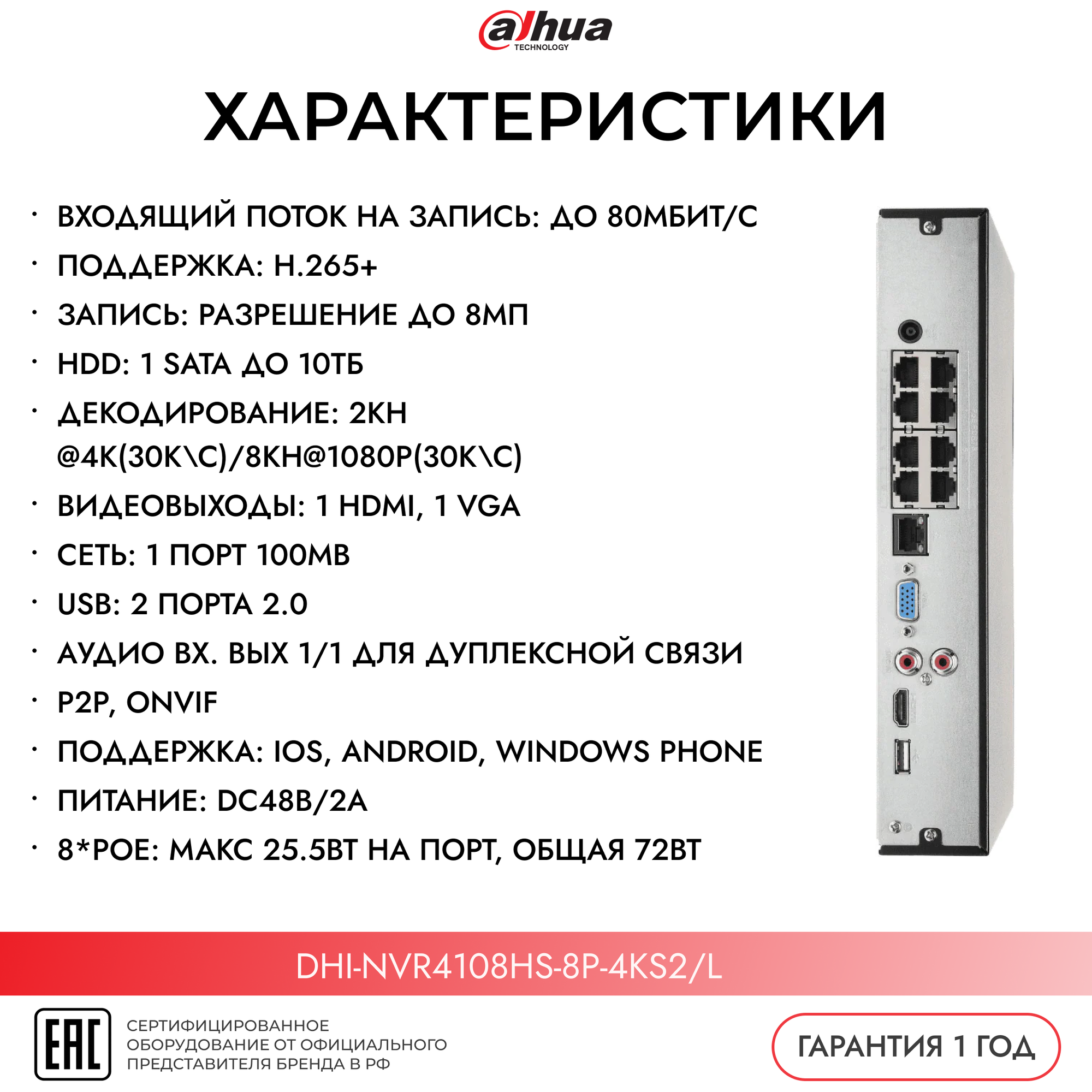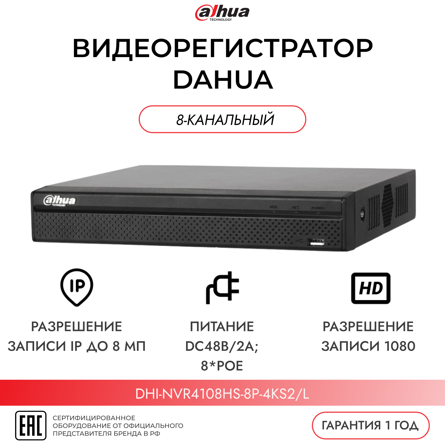 Видеорегистратор IP Dahua DHI-NVR4108HS-8P-4KS2/l интересное: