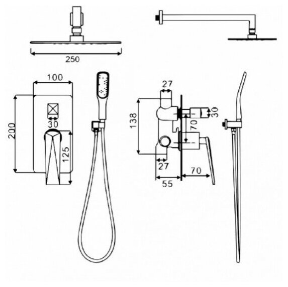 Душевой комплект 250 мм Boheme Venturo 384-B