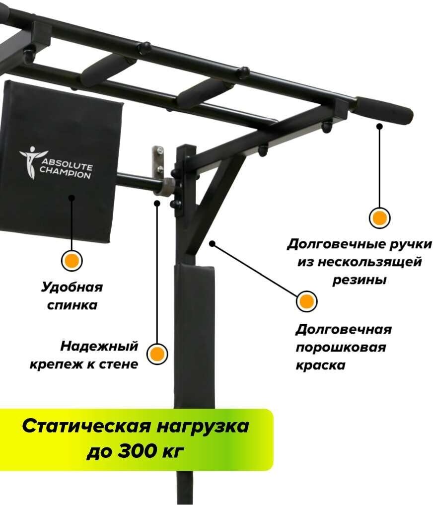 Турник-брусья Absolute Champion профи "Атлет" 3 в 1, цвет черный