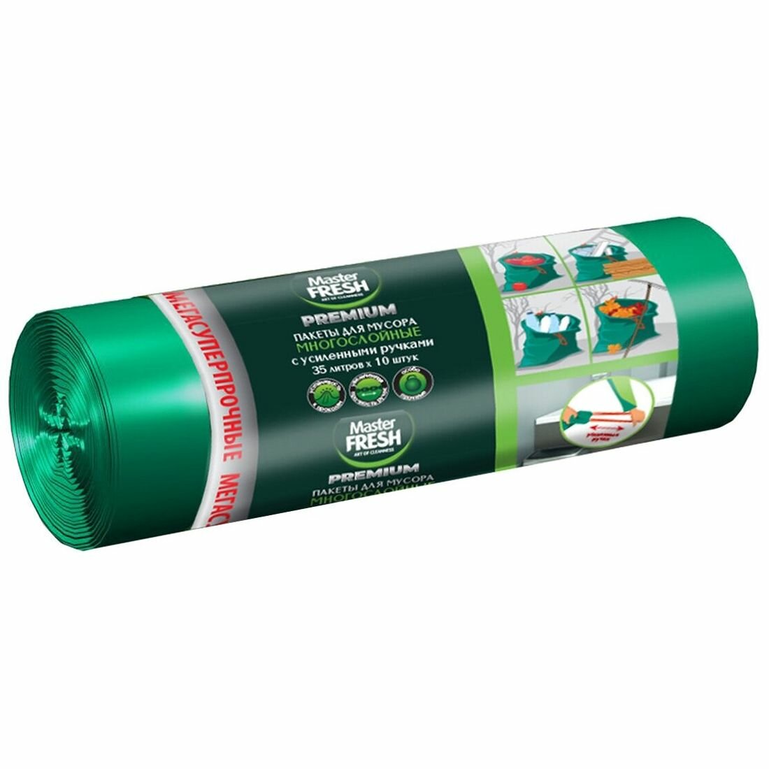 Пакеты для мусора Master FRESH многослойные 35л с усиленными завязками, 10 штук (Артикул: 4100016600)