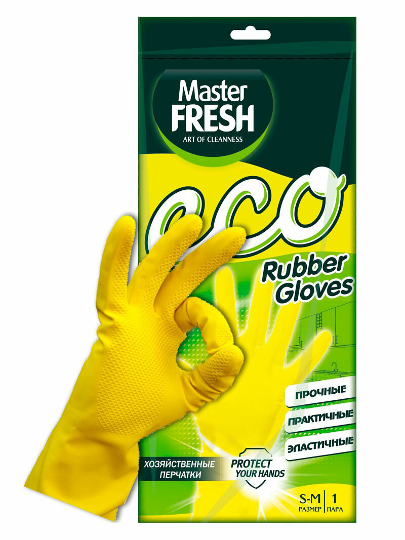 Купить Перчатки резиновые латексные Master Fresh Eco, размер S/M, желтые