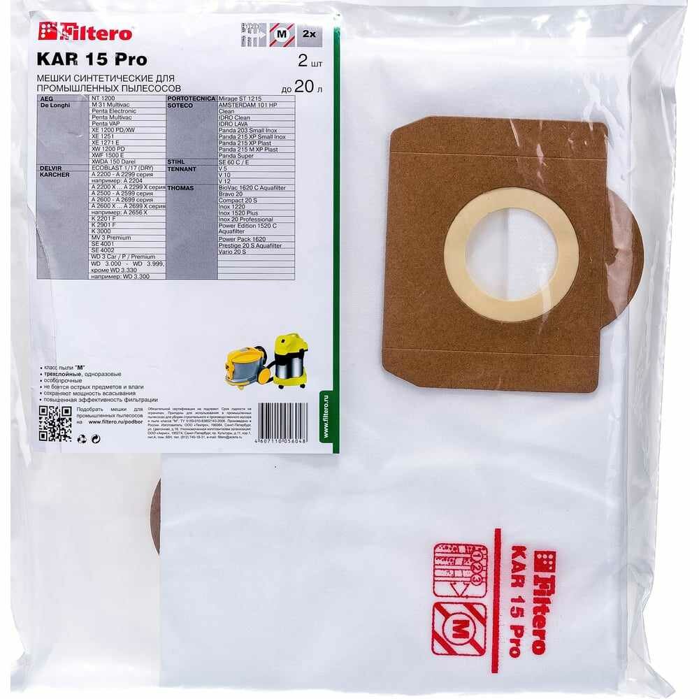 Купить Filtero Мешок-пылесборник синтетический трехслойный KAR 15 Pro 2шт до 20л 05604 .
