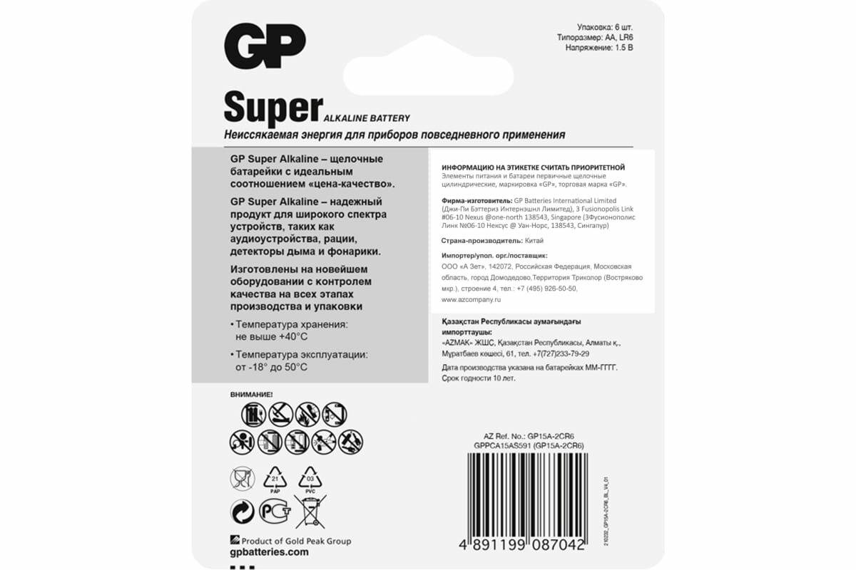 Купить GP Алкалиновые батарейки Super Alkaline 15А АA - 6 шт. 15A-CR6