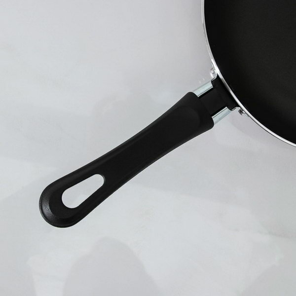 | Минусы: | Сковорода кривая. Тонкий металл, при нагревании деформируется, дно выгибается. |