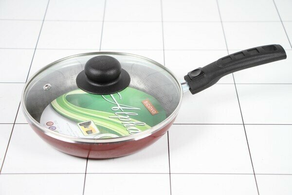 Сковорода SCOVO "Альфа", d 22 см, съемная ручка, стеклянная крышка