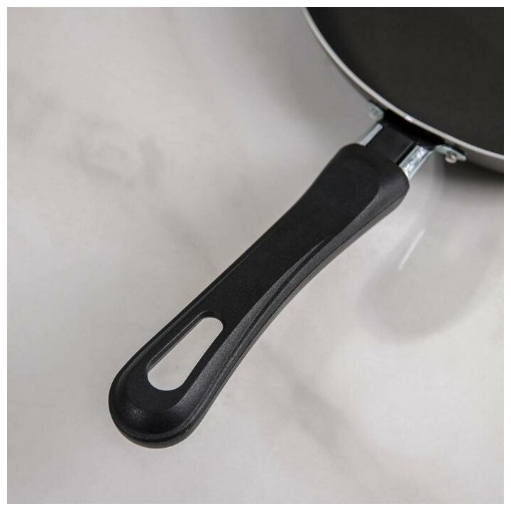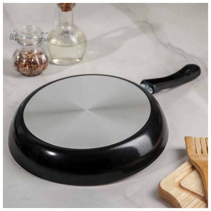 Сковорода Promo, d=24 см, стеклянная крышка, пластиковая ручка, антипригарное покрытие, цвет чёрный
