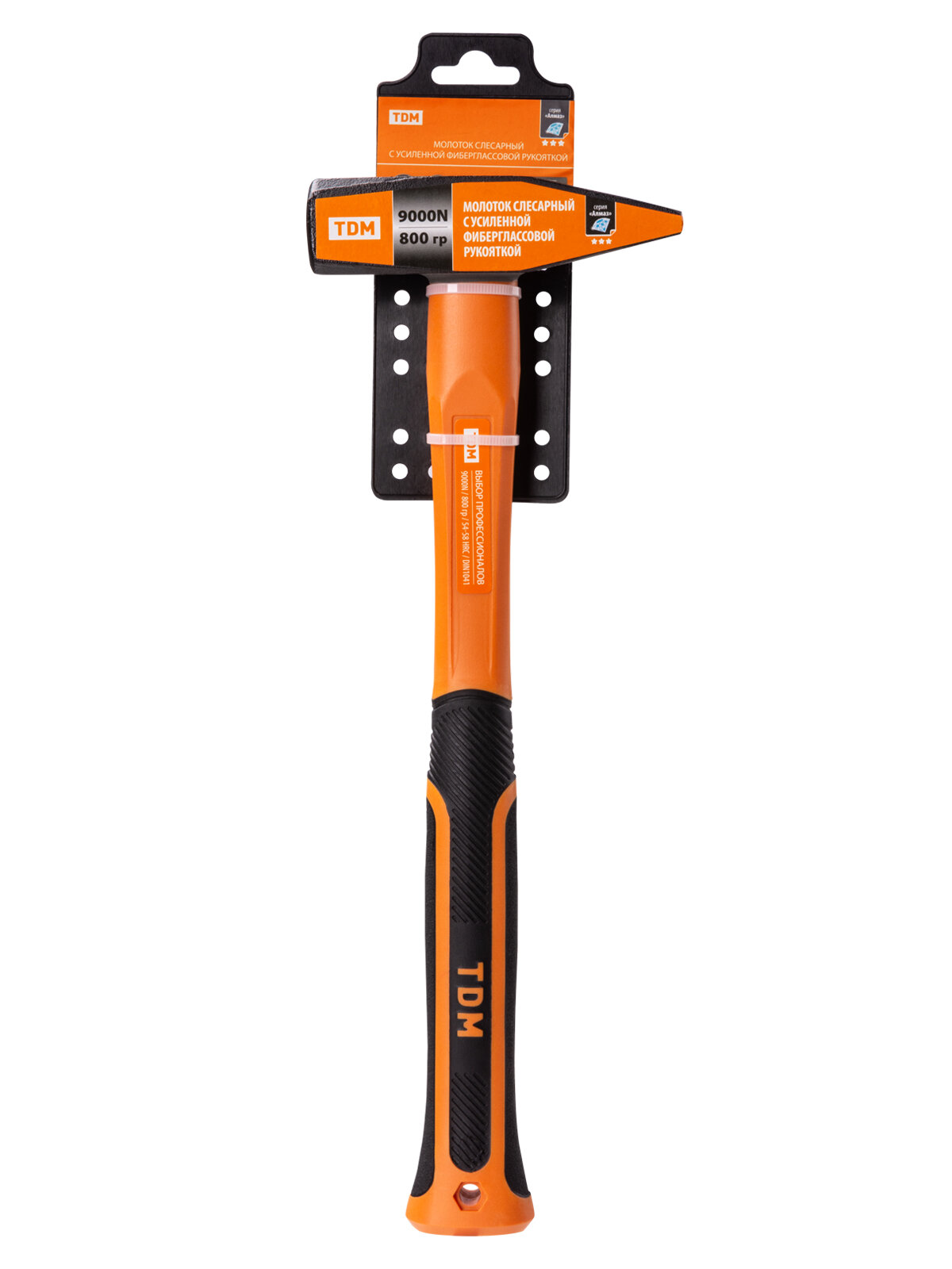 TDM Молоток слесарный, 800 гр, кованый, с усилен. прорезиненной фиберглассовой рукояткой Алмаз SQ1036-0115