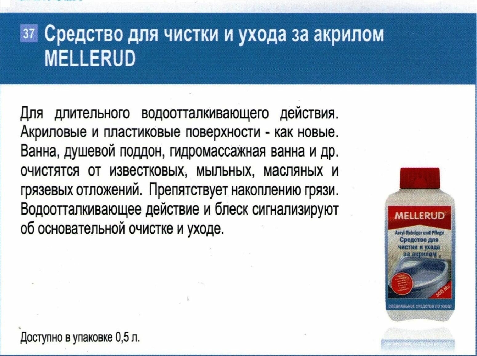 Mellerud Средство для чистки и ухода за акрилом 0,5 л (жидкость) интересное: